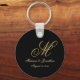 Porte-clés Élégant Noir Script MonogramButton Porte - clé