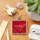 elegant red glitter initial wedding couple keychain ,chic custom gift bride and groom