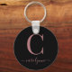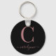 Chic Elegant Rose Rose Gold Monogramme Script sur un Porte - clé noir rond chic. Facile à customiser avec votre propre nom et vos détails. Parfait pour votre luxe ! Veuillez nous contacter à cedarandstring@gmail.com si vous avez besoin d'aide pour la conception ou les produits correspondants.