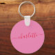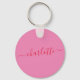 Ce porte-clés rond personnalisé comporte un nom personnalisé en écriture élégante rouge sur fond rose, créant un accessoire quotidien simple mais élégant. Personnalisez-le avec un nom pour en faire un cadeau attentionné pour les demoiselles d'honneur, les cadeaux de fête de bachelorette ou les cadeaux de remerciement pour la douche de mariée. Léger et facile à transporter, c'est un souvenir pratique que les invités pourront utiliser longtemps après la célébration. Une option moderne pour coordonner les accessoires de la fête de mariage et les faveurs personnalisées.
