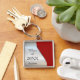 La caractéristique de ce porte-clés diplômé élégant est un fond moitié argenté brillant et moitié rouge vif séparé par une fine ligne diagonale en faux chrome argenté. Votre texte personnalisé, y compris l'année de promotion appropriée et le nom de votre diplômé, est en gris foncé sur la partie inférieure de la moitié argentée. Un beau souvenir pour le diplômé du lycée ou de l'université.
