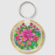 Tropical Pink Floral Keychain – Vibrant Summer Flower Bouquet Design with Faux Gold Frame.