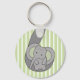 Eléphant de bébé gris avec oreilles écossaises bercées par maman sur vert et blanc Arrière - plan rayé