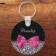 Un porte - clé empreinte de léopard à la mode noir et blanc avec un ruban rose foncé vif attaché dans un joli arc girly. Personnalisez ce design chic et élégant pour motif animal en ajoutant le nom de votre fille ado. Image imprimée plate, pas le ruban réel.