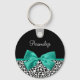 Personnalisez en ajoutant le nom de n'importe quelle fille à ce porte - clé empreinte de léopard à la mode noir et blanc avec un ruban vert émeraude ceint d'un joli arc. Ce design poster de animal élégant est une image à impression plat, et ne contient pas de ruban réel.