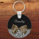 N'importe quelle fille sophistiquée de la mode adorerait que son nom soit personnalisé sur ce porte - clé empreinte de léopard noir et blanc tendance avec un élégant ruban brun foncé attaché à un arc chic. Image imprimée plate, pas le ruban réel.