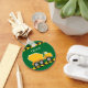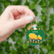 Cool cadeau de véhicule de construction personnalisé pour un enfant qui aime les mélangeurs de ciment jaune sur un porte - clé vert. Conception de véhicule amusant pour un petit garçon qui aime les voitures et les camions. Customisez avec le nom de votre enfant sous le ruban de prudence noir et jaune.