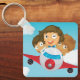 Un graphique amusant de quelques enfants volant dans un avion. Cette conception semble vraiment efficace sur ce Porte - clé