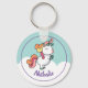 Enfants porte - clé avec une mignonne licorne debout sur un nuage avec un arrière - plan bleu.