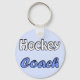 Hockey Coach. Porte-clé souple. Couleurs: bleu, blanc et noir. C'est sympa de porter un entraîneur fier.