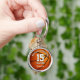 Ce porte - clé de basket présente l'image réaliste d'un basketball, sur laquelle vous pouvez customiser le nom de l'athlète, son numéro de maillot, son nom d'équipe et son nom de mascotte - par katz_d_zynes