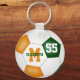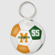 Cette équipe colorant le porte - clé de football pour les filles ou les garçons dispose d'une balle de football de style traditionnel sur laquelle vous pouvez facilement customiser le nom du joueur, le monogramme et le numéro de maillot - les panneaux de football typiquement noirs sont recolorés vert et orange - par katz_d_zynes