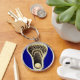 Cadeau unique de porte-clés commémoratif de crosse présentant un design de bâton de lax sur fond bleu royal pour joueur, entraîneur d'équipe ou fan de sport.