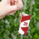 Ce porte - clé à thème de volley-ball présente l'image abstraite surdimensionnée d'un volley-ball rouge et blanc sur le devant, sur lequel vous pouvez customiser le numéro de maillot de l'athlète - à l'envers, le nom de l'athlète surplombe un volley-ball blanc de base tout aussi surdimensionné - par katz_d_zynes