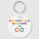 Design fait avec amour pour la Sensibilisation sur l'autisme. Les lettres arc-en-ciel forment l'expression "Autistiquement Awesome To Infinity" avec un symbole infinity.