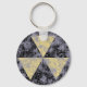 Symbole de l'abri anti-chutes grungy, noir/jaune sur violet, lourdement affligé. Sur t-shirts, sweatshirts, boutons, cadeaux.