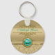 Porte-clés Faux Emerald Gemstone Metally Shiny Gold Damask
