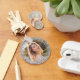 Create your own girly glam round key chain featuring a round faux silver grey glitter border.