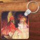 Porte - clé représentant John Anster Fitzgerald (1819-1906) peint Summer Solstice. Une fée aux ailes rouges tient un cattail devant une statue de lune. A côté d'elle, assis un couple de fées en blanc. Les petites fées et les oiseaux regardent. Un cadeau merveilleux pour les amateurs de contes de fées et les collectionneurs d'art victorien !