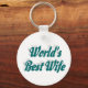 Porte - clé avec la meilleure épouse du monde en texte bleu-vert 3D. Porte - clés ronds et carrés disponibles en plusieurs tailles.