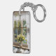 Porte-clés Fenêtre avec rideau de dentelle et tulipe