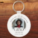Célébrez la réussite de votre diplômé avec un gardien porte - clé personnalisé pour les pères fiers. Doté de "Papa fier de notre nouveau grade", de leur nom, de leur année de classe et d'une photo unique de chaque côté, ce design capture des souvenirs précieux de manière compacte et significative. Un hommage réfléchi et durable à cette étape importante. Palette de couleurs noir et blanc. © Kimbellished, LLC