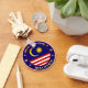 Le drapeau national de la Malaisie est infusé dans un cercle qui en lui-même est décoré dans les couleurs du drapeau. Outre le texte, il y a aussi des étoiles décoratives utilisées comme séparateurs.