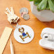 Une fille assise sur une clôture buvant un verre. Cette conception semble vraiment efficace sur ces Porte - clés