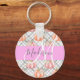 Porte - clé monogramme fillette avec citrouilles de pêche et rose fleurie printemps / automne et un arrière - plan blanc et gris. Votre nom personnalisé et votre monogramme sont écrits dans un élégant script gris et blanc avec un arrière - plan rose. Vous pouvez modifier la couleur du texte, le style et la taille de police à l'aide de l'option personnaliser.