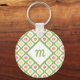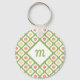 Un carrelage girly motif porte - clé de base en vert et blanc vert et décoré de jolies fleurs de marguerite jaune et orange rétro. Personnalisez la fille spéciale de votre vie en ajoutant son initiale monogrammée à l'insigne en forme de losange.