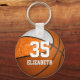 Ce porte - clé de basket-ball girly aux couleurs d'équipe orange et blanc personnalisées présente un graphique de basket-ball avec nom de joueur facilement personnalisable et numéro de maillot - deux des panneaux de basket-ball ont un aspect texturé artistique, l'un mélangé avec du blanc et l'autre mélangé avec de l'orange - par katz_d_zynes