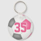Ce mignon porte - clé de football présente un graphique simple de ballon de football avec panneaux rose, gris et blanc - customisez facilement le porte - clé avec le nom du joueur et le numéro de maillot - par katz_d_zynes