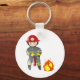 A fire fighter putting out a fire with an extinguisher. This design looks really effective on these Keychain