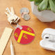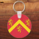 Keychain with design with a flag of historic county of Anglesey, in Wales, Great Britain;; red flag with yellow chevron and three lions;