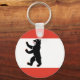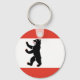 Button Keychain with flag of Berlin, state flag with horizontal stripes of red and white, with an illustration of a black bear in the center