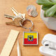 Square Keychain with design with flag of Bogota, capital city of Colombia, red and yellow flag with coat of arms with eagle in the center