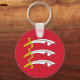 Keychain with design with a flag of historic county of Essex, in England, Great Britain; red flag with three white, gold hilted Saxon swords (Seaxes)