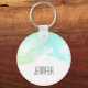 Un porte - clé avec une bordure abstraite le long du dessus avec des couleurs tourbillonnant vertes et bleues. Un design doux et estival. Une lumière croise la texture derrière l'image.