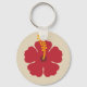 Ce porte - clé est décoré d'un Hibiscus rouge branché et élégant, une fleur tropicale colorée.