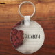 Un porte - clé rond avec une photo à thème floral d'automne. Papier à écritures recouvert d'une doublure défraîchie avec quelques jolies fleurs rouges et des feuilles verts placés sur les bords. Personnalisez avec un nom dans une police art déco noire.