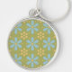 Porte-clés Fleurs bleues et jaunes Abstraites rétro sur vert