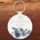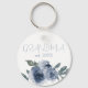 Cette porte - clé personnalisée présente un thème floral sain. Un bouquet de fleurs bleu aquarelle est placé en bas. Le titre de grand-mère est imprimé dans une police manuscrite avec l'année établie.