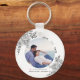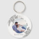 Fleurs grises, feuilles verts et photo Save the Date photo porte - clé. Un joli design qui présente une photo, des fleurs grises sur les coins supérieur gauche et inférieur droit, le texte "Save the Date" et un coeur rose roux.