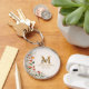 Voici notre porte-clés Fleurs de champignons de forêt Monogramme botanique floral. Avec une illustration aquarelle de champignon, fraise, fleurs sur fond presque blanc. Et un texte modifiable qui peut être personnalisé pour ajouter une touche unique. Convient comme cadeau de pendaison de crémaillère ou de mariage.