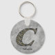Porte-clés avec initiale de monogramme C rempli de délicates fleurs d'hydrangea blanches. Conception de Susan.