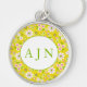 Porte-clés Fleurs Mood rétro Monogramme jaune et blanc