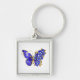 Jewelry, blue, sapphire, sparkling flower butterfly with wing decorated with blue, precious flowers with gold leaves on white background.