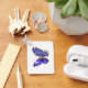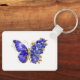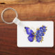 Jewelry, blue, sapphire, sparkling flower butterfly with wing decorated with blue, precious flowers with gold leaves on white background.