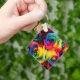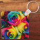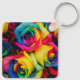 Ce porte - clé a des roses arc-en-ciel dessus.