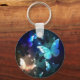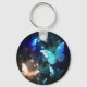 Fabulous, glowing, blue and yellow, night butterfly on dark background.